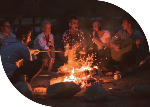 z ogniskiem i ogródkami sąsiedzkimi.