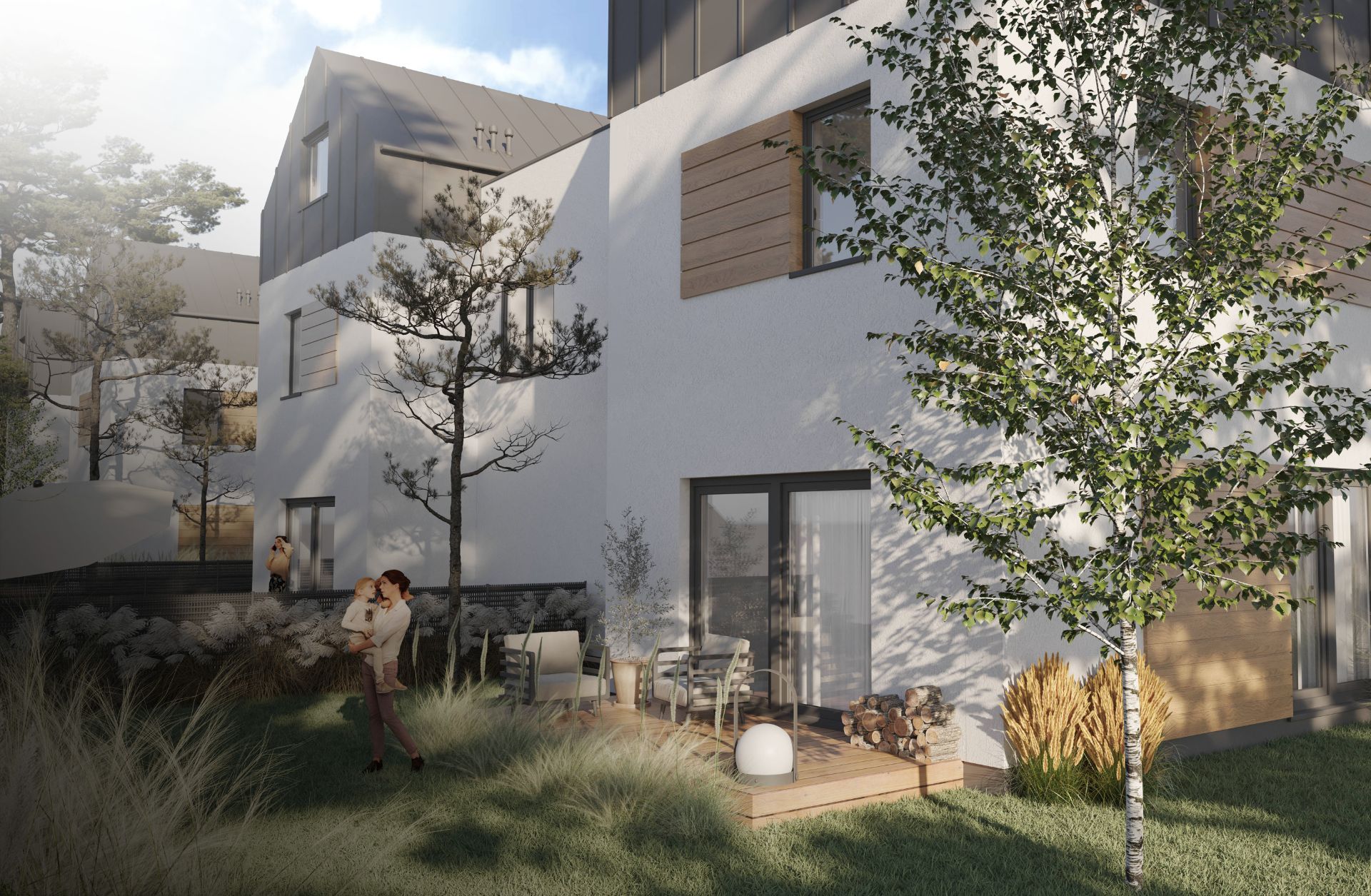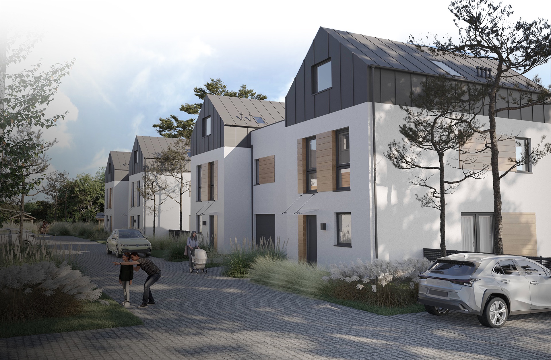 Słuchając potrzeb naszych klientów, w każdym domu zaprojektowaliśmy duży ogród (od 285 m² do 395 m²) oraz dodatkowe dwa miejsca parkingowe.